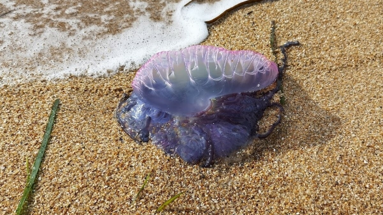 En Japón, un estudiante de grado encontró un organismo parecido con medusa en una playa en la región de Tohoku. El ejemplar resultó ser una nueva carabela, Physalia mikazuki, un animal venenoso que parece medusa, pero es una colonia de pólipos.