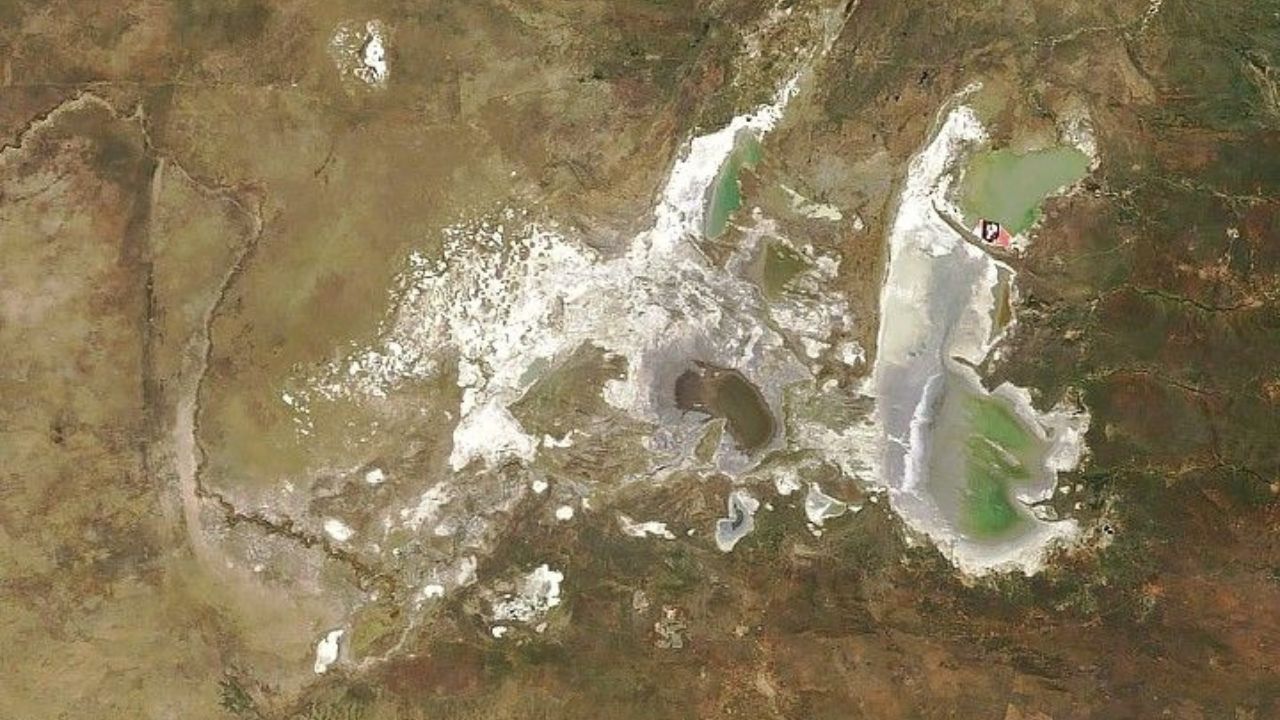 En Botsuana, una llanura salina de hasta 16,000 km² que alguna vez fue un megálago africano pasa meses como un desierto blanco absoluto, pero en la temporada de lluvias se transforma en un mar poco profundo que reaparece de la nada y puede ser visto desde el espacio en medio del sur de África.
