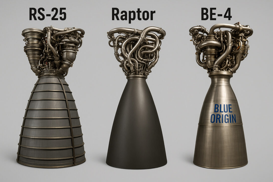 Mientras que los RS-25 son conocidos por su eficiencia, motores como el Raptor de SpaceX y el BE-4 de Blue Origin priorizan otros factores, como la reutilización y la producción en gran escala.
