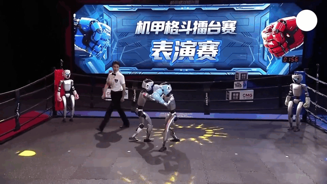 Y no eran solo golpes rectos o cruzados. También pateaban, giraban, caían y se levantaban. Se podía ver claramente que el enfoque del equipo de Unitree no fue solo hacer un robot que camina. Hicieron robots que luchan con estilo.
