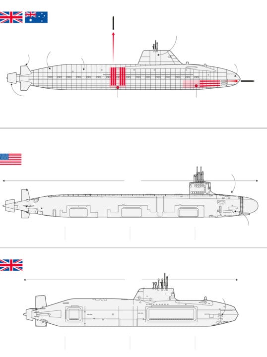El Nuevo Tipo 093B Se Parece Al Submarino Norteamericano Virginia Block V, Que Cuenta Con 460 Pies De Longitud Y Desplaza 10.200 Toneladas. Este Aumento En El Tamaño Se Debe A La Adición De Un Módulo Llamado “Virginia Payload Module”, El Cual Incluye Lanzadores Verticales Para 28 Misiles De Crucero Tomahawk, Transformando Al Submarino En Un Verdadero Arsenal Sumergido.