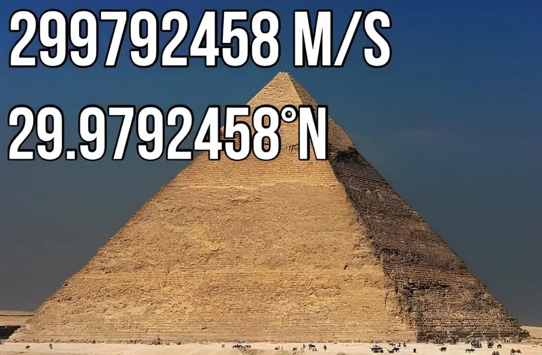 Para aquellos que se preguntan qué tienen que ver las dos informaciones entre sí, en realidad, absolutamente nada. A no ser una gran curiosidad numérica: la velocidad de la luz es de 299.792.458 metros por segundo en el vacío, y la latitud de la pirámide es exactamente 29.9792458ºN.