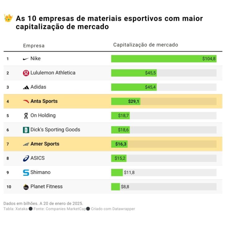 Esto significa que, si sumamos los valores de mercado de ambas, Anta ya rivaliza directamente con Adidas y Lululemon, disputando el segundo lugar en el sector deportivo mundial.