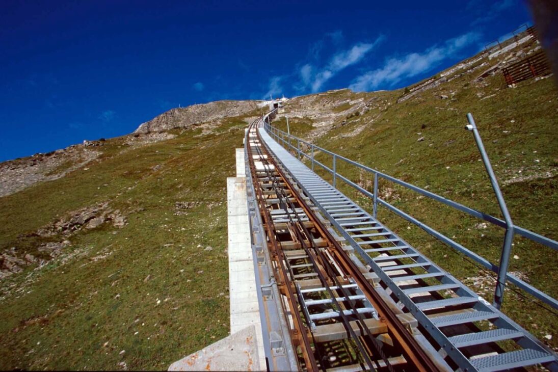 En El Monte Niesen, la escalera del funicular Niesenbahn suma 11.674 escalones y supera 1.669 metros de desnivel en una subida que exige preparación de atleta