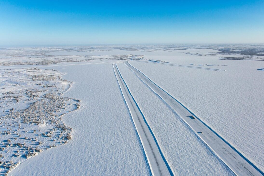 Durante algunos meses del año, vehículos pesados atraviesan lagos congelados y áreas remotas para garantizar suministros esenciales. Cuando la temperatura sube, la ruta simplemente deja de existir.