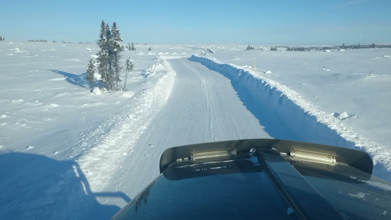 La ruta más conocida es la Tibbitt to Contwoyto Winter Road, construida sobre lagos y tramos naturales que congelan por completo.