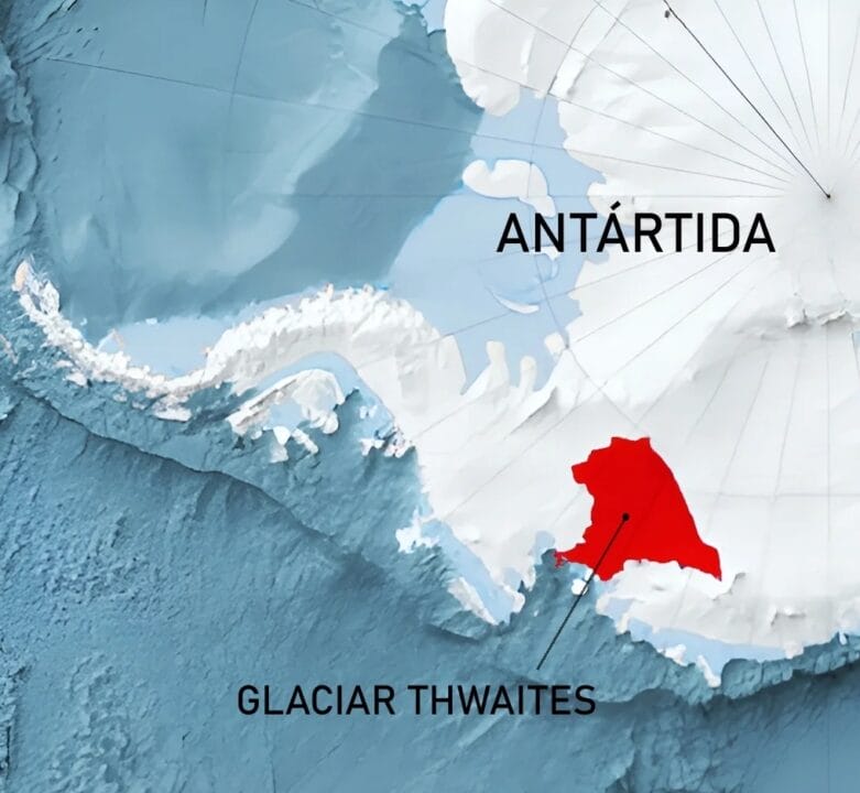 ¿Por qué es tan importante este glaciar? Porque tiene el potencial de provocar un aumento catastrófico del nivel del mar si se derrite completamente. El glaciar Thwaites ya contribuye con el 4% del aumento global del nivel del mar al verter miles de millones de toneladas de hielo en el océano cada año. Su colapso total podría elevar el nivel del mar en más de 60 centímetros. Pero eso no es todo. El glaciar Thwaites también actúa como una tapa que impide que el agua del mar caliente llegue a otros glaciares mayores que están detrás de él. Si el Thwaites colapsara, desencadenaría una reacción en cadena que podría elevar el nivel del mar otros tres metros.