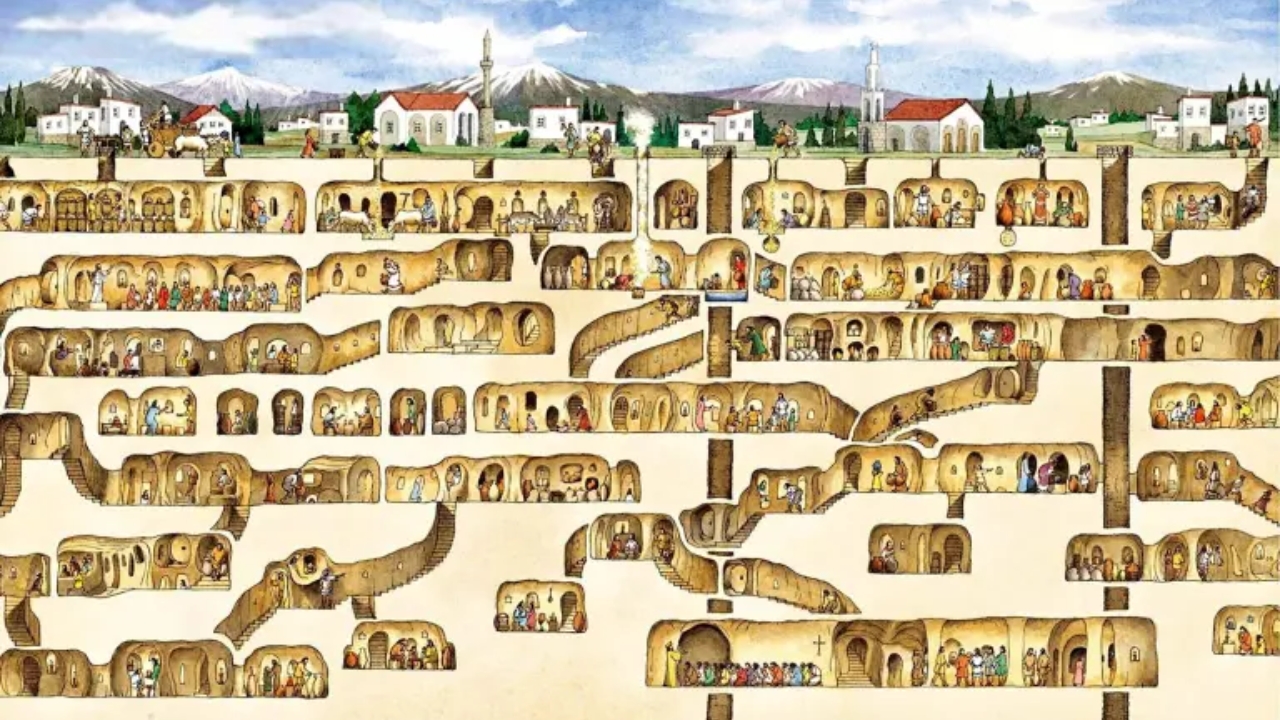 Un Habitante En Turquía Derribó Una Pared Y Descubrió Derinkuyu, Una Ciudad Subterránea Con 85 Metros De Profundidad, Capaz De Abarcar 20 Mil Personas Y Equiparada Con Bodegas, Capilla Y Sistema De Ventilación