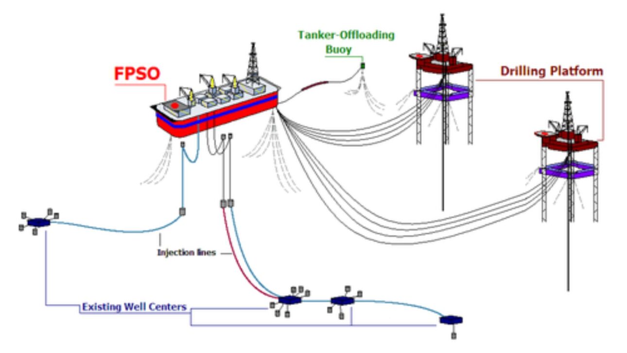 En Brasil, la mayor parte de la producción offshore está concentrada en la Cuenca de Santos, destacando el campo de Mero. Allí opera la unidad FPSO Guanabara, gestionada por Petrobras. FPSO es la sigla para Floating Production Storage and Offloading, una estructura flotante capaz de producir, almacenar y transferir petróleo.