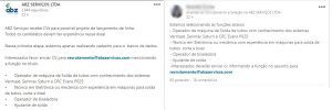 No sabemos qué está sucediendo, pero ABZ Servicios ya había solicitado algunos profesionales el 31 de mayo para un proyecto de lanzamiento de línea y que fue divulgado ampliamente por nuestro portal. Pero ayer (04), la empresa solicitó nuevamente los mismos profesionales, todo indica que está teniendo un poco de dificultades para encontrarlos. Entonces vamos nuevamente a publicar cuáles son ellos y sus especificaciones, así que lean con atención y si conocen a alguien que se ajuste, divulguen este artículo: