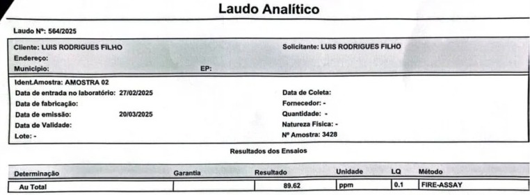 El descubrimiento se realizó en la zona rural de Currais, en un área que pertenece al exconcejal de Bom Jesús, Luiz Rodrigues Filho. La región ya cuenta con autorización de investigación aprobada por la Agencia Nacional de Minería (ANM), lo que legaliza la exploración para estudios geológicos. Lo que llamó la atención de los técnicos fue el índice de pureza en las muestras recolectadas: 89,62 gramos de oro por tonelada de suelo — un número considerado fuera de lo común.
