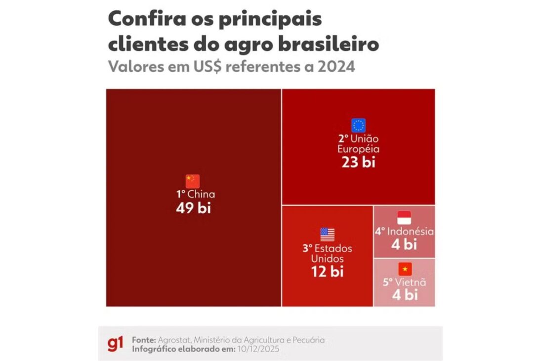 Brasil aparece como uno de los principales beneficiarios del acuerdo, por ser uno de los mayores productores de alimentos del mundo. La Unión Europea es el segundo mayor cliente del agro brasileño, detrás de China y delante de Estados Unidos.