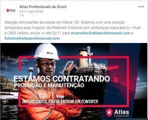 Atlas Professionals acaba de solicitar almoxarifes para posiciones de Inspectores de Materiales, con el fin de realizar trabajos offshore esporádicos, siendo que la mayoría de las actividades serán en tierra. Para esto, todos los candidatos deben cumplir rigurosamente los requisitos que serán publicados a continuación, pero antes de pasar a la siguiente etapa, hemos hecho una lista de las principales empresas petroleras que operan en el noreste, vuelvan aquí y verifiquen después, puede ser una buena oportunidad para invertir en sus carreras en el sector de petróleo sin necesidad de bajar al sudeste.