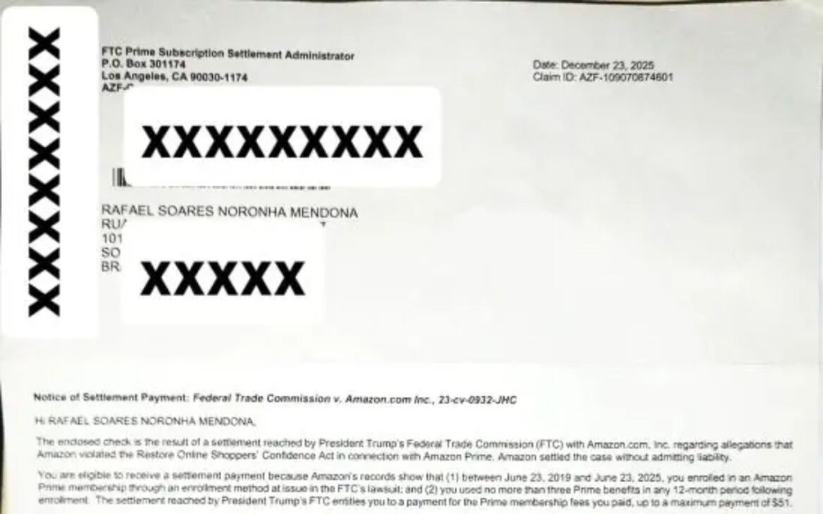 Amazon Envía Cheques de EE. UU. a Brasileños por Acuerdo con la FTC Tras Acusaciones de Cancelación Abusiva del Prime e Indemnización que Puede Llegar a US$ 51 por Cliente.