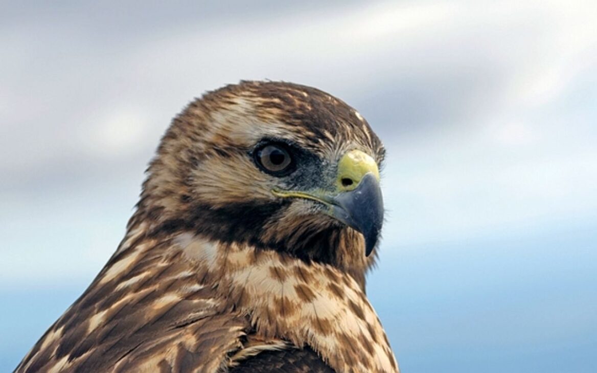 El halcón de Galápagos (Buteo galapagoensis) actúa como el principal depredador aéreo del archipiélago.