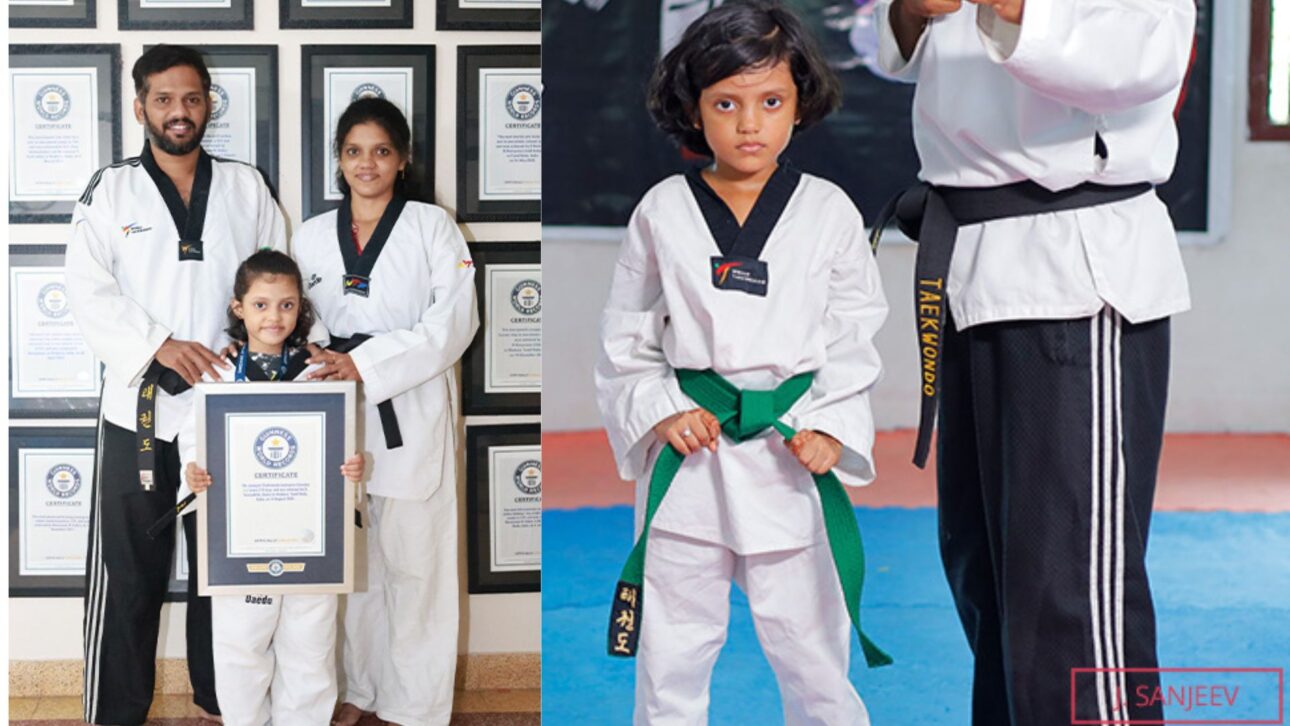 Una niña de Madurai, en el sur de la India, fue reconocida por el Guinness World Records como la instructora de taekwondo más joven del mundo al asumir clases en la academia de la familia a los 7 años y 270 días, tras alcanzar el cinturón negro.