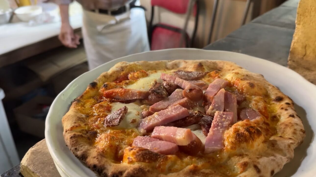 La fermentación también exige atención constante. A lo largo del año, la cantidad de agua y levadura debe ser ajustada según la temperatura y la humedad. No existe fórmula fija. Cada día exige lectura del ambiente, experiencia acumulada y pequeñas correcciones. Este nivel de control explica por qué la pizza, incluso simple, presenta características únicas: queso extremadamente derretido, masa ligera y sabor equilibrado.