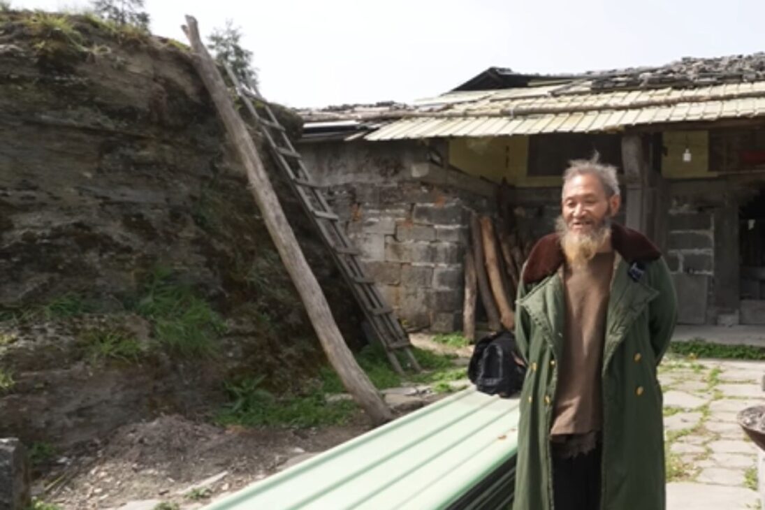 El hombre se presenta como abuelo Jia. Él dice que subió la montaña alrededor de los 64 o 65 años y desde entonces vive en el templo.