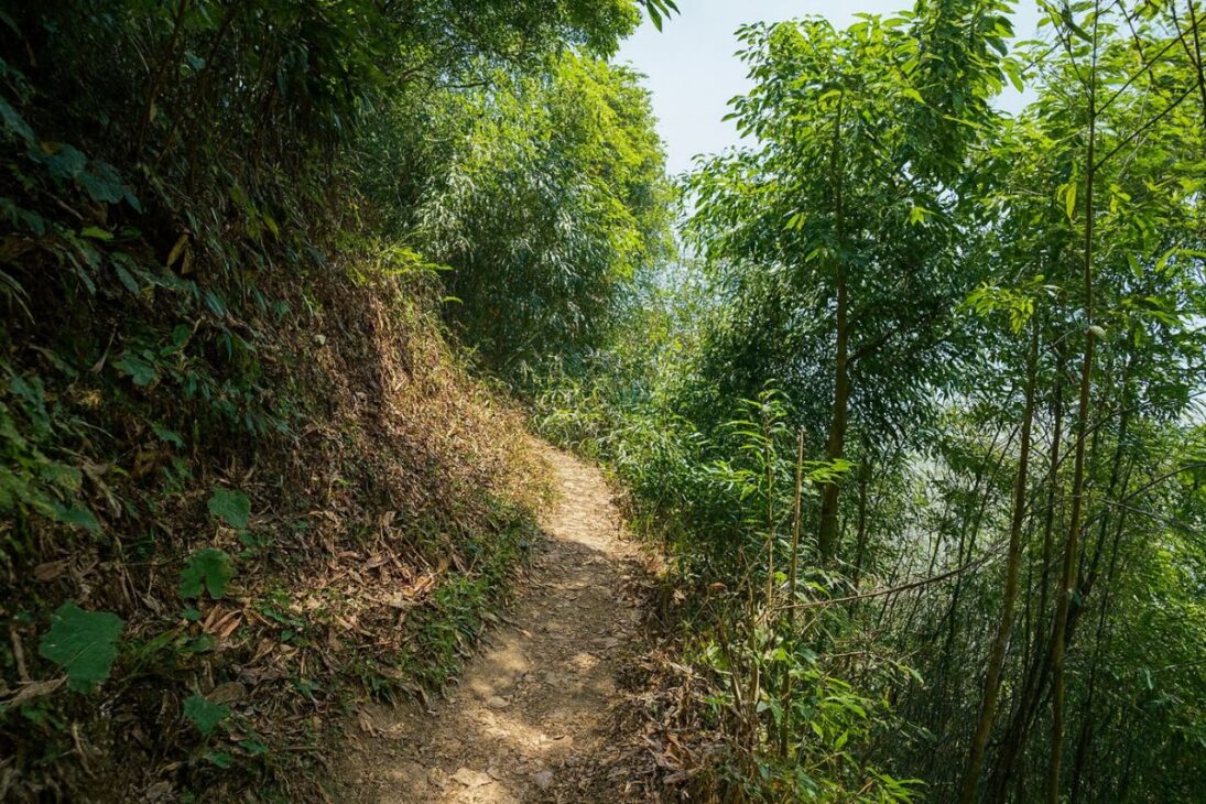 Casi tres horas de montaña continua, con desniveles fuertes, acantilados al lado del sendero, arroyos cruzando el camino y tramos en los que solo se ve bambú por todos lados.