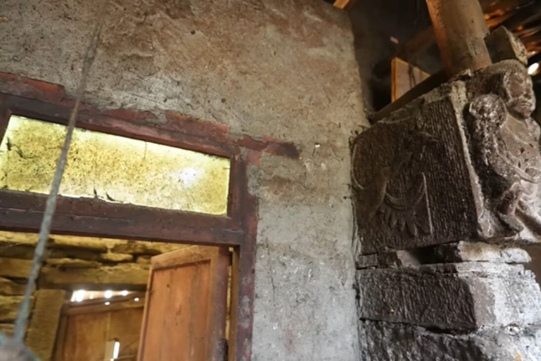 Todo allí respira antigüedad. Paredes de piedra con manchas, grietas e inscripciones ya casi borradas, pilares construidos con técnica de encastre y espiga, sin concreto moderno, y detalles que remiten a períodos históricos antiguos.