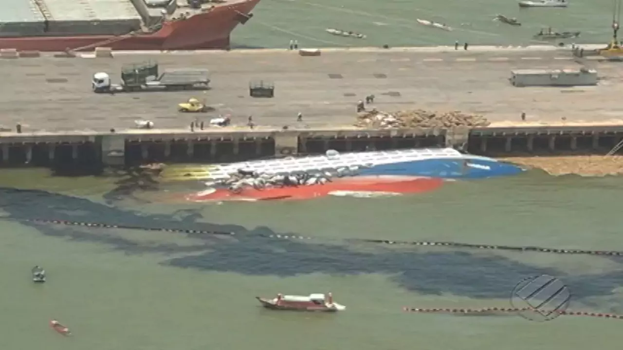 Años Después del Naufragio, un Barco que Transportaba Ganado y Aceite en Pará Será Retirado del Fondo del Río, Desocupando el Muelle 302 del Puerto de Vila do Conde, en Barcarena. El Naufragio Generó Diversos Impactos Ambientales