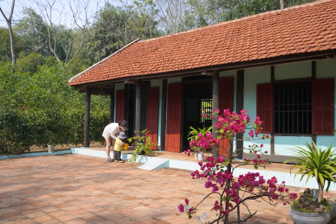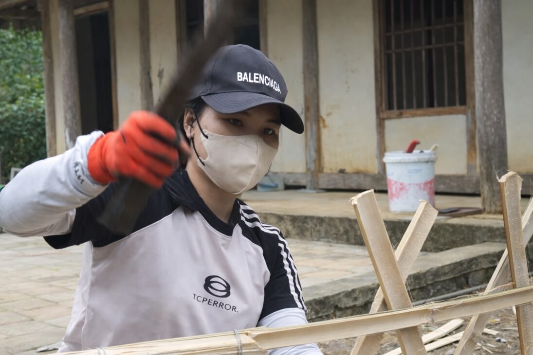 En el jardín, la transformación siguió otra lógica. Muchas varas de bambú fueron cortadas, alineadas y fijadas como cerca ligera para delimitar el área de cultivo.
