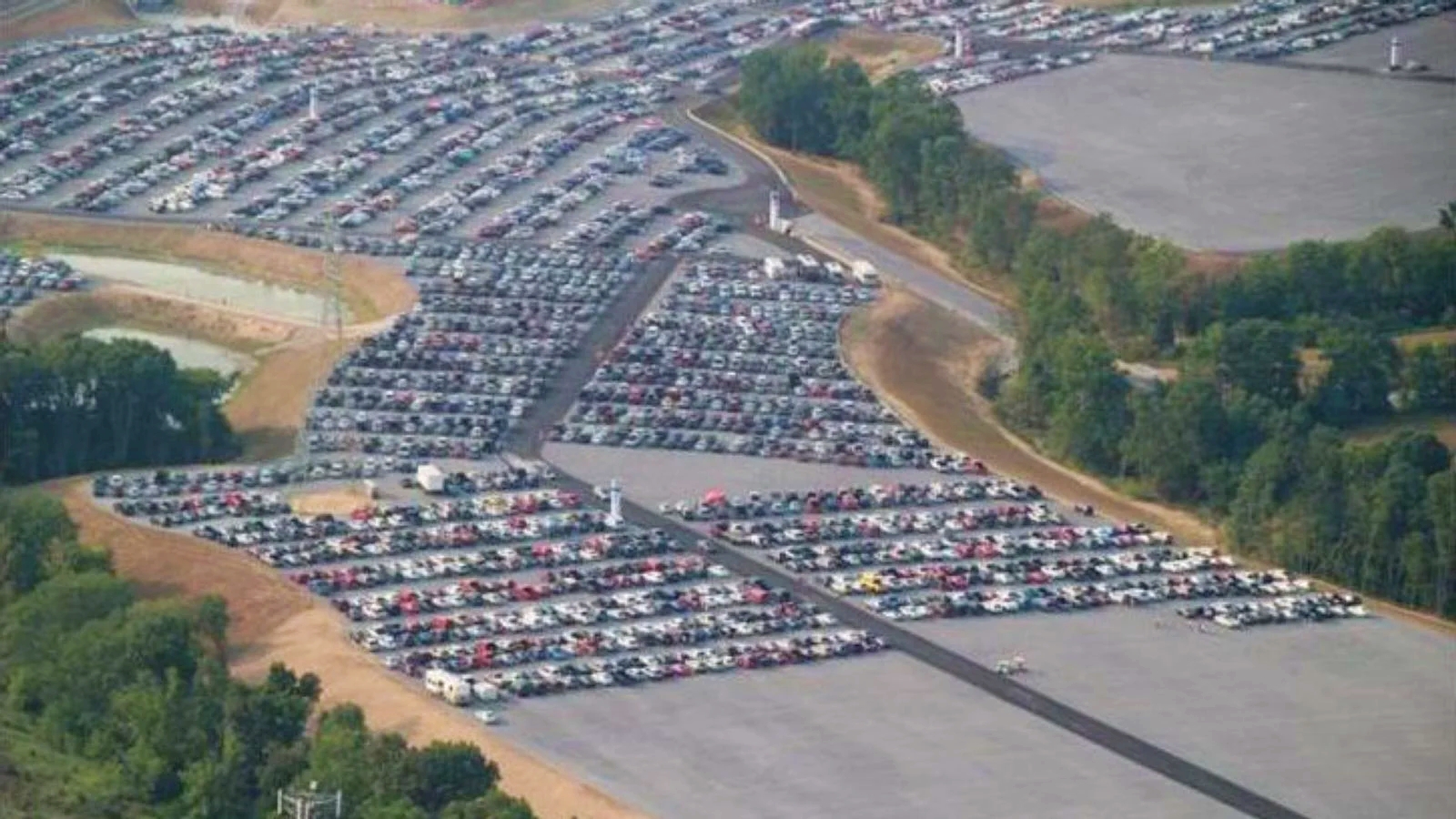 Como se puede ver a continuación, Ford comenzó a almacenar las camionetas en el autódromo Kentucky Speedway. Fotos satelitales revelan los vehículos estacionados acumulándose rápidamente durante casi un mes debido a la escasez de chips y piezas.