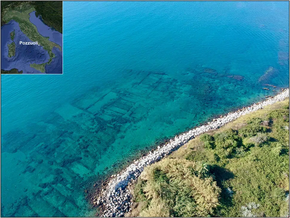 El puerto de Puteoli era un importante punto de entrada para productos de Egipto y del Norte de África, con una infraestructura que incluía amplios almacenes y edificios sofisticados. Debido a la actividad volcánica, estas estructuras fueron sumergidas, preservando lo que quedó bajo el mar.