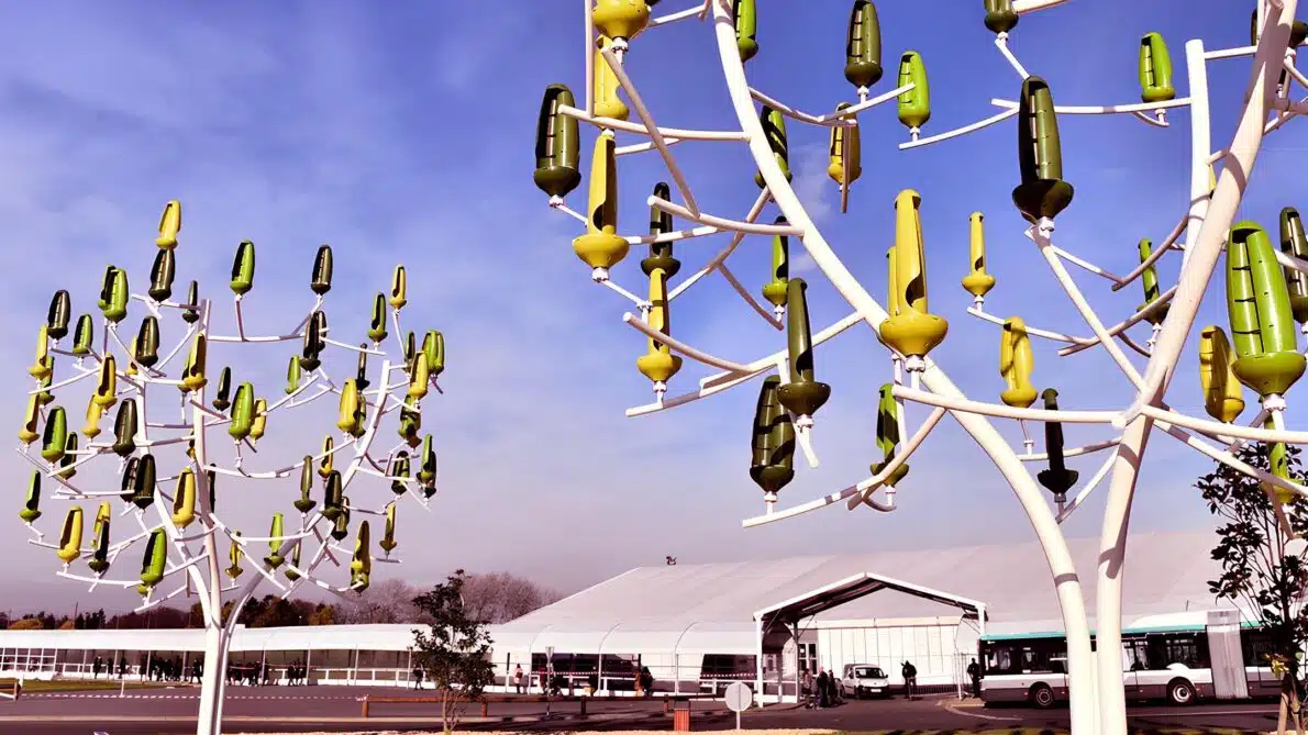 El “árbol eólico”, una innovación de la empresa francesa New Wind en el campo de las energías renovables. Esta turbina, con diseño que imita un árbol, posee hojas de plástico llamadas Aeroleafs y mide más de 9 metros de altura por 7 metros de ancho. Equipado con 54 microturbinas, puede generar hasta 5,4 kW de energía, satisfaciendo hasta la mitad de las necesidades energéticas de una familia francesa promedio o una pequeña oficina. El árbol eólico funciona con vientos suaves, es silencioso y ocupa mucho menos espacio en comparación con los paneles solares tradicionales.
