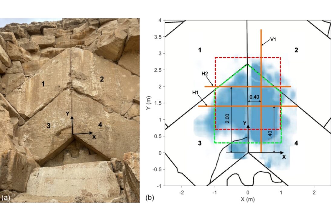 Los resultados fueron sorprendentes. Las mediciones indicaron la presencia de dos cavidades muy cercanas entre sí, una situada a 1,4 metro detrás de la superficie este y otra a 1,13 metro, lo que sugiere un posible corredor o cámara sellada. Aunque aún es necesario realizar más pruebas, los investigadores creen que los datos apuntan a una anomalía arquitectónica intencional, posiblemente diseñada como una entrada secundaria o cámara ritual.
