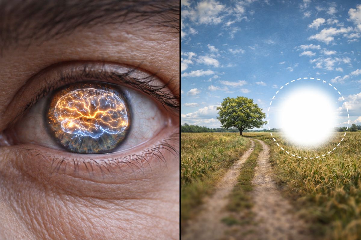 Lo que llamas visión está mucho más construido por el cerebro de lo que el ojo deja parecer, porque existe un punto ciego en la retina que debería crear un agujero en la imagen, pero la mente lo llena todo sin que te des cuenta.