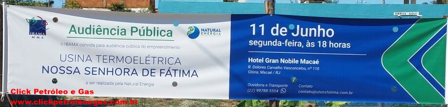 La Usina Termoeléctrica Nossa Senhora de Fátima es uno de los emprendimientos más esperados en la ciudad de Macaé. Cuando decimos «más esperados» es porque en esta vitamina de expectativa, la construcción del TEMPOR (Terminal Portuario de Macaé) También Está Previsto En El Proyecto Desarrollo Del Municipio. Volviendo al tema de la termoeléctrica, la fecha de la Audiencia Pública fue agendada para el día 11 de junio (lunes), a las 18 horas en el Hotel Gran Nobile Macaé en el Barrio de la Glória. Por increíble que parezca, no nos enteramos de este evento a través de los medios, comunicados de Facebook u otro vehículo de comunicación, simplemente abrí la puerta de nuestra casa y allí estaba el banner del evento colgado casi frente a la puerta de mi casa. ¿Dudas? Vean la foto que tomé justo después: