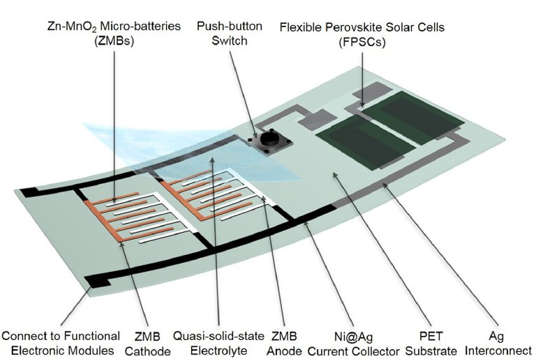 Tanto la batería de zinc y manganeso (Zn-MnO2) como los paneles solares de perovskita fueron producidos en capas aplicadas por un sistema de chorro de tinta y electrodeposición, un sistema de bajo costo. Según los científicos, la microbatería de zinc optimizada presentó una densidad volumétrica ultra-alta de 148 mWh cm³ y una densidad de potencia de 55W cm³ en la densidad de corriente de 400 C, permitiendo compararla con las microbaterías o supercapacitadores de última generación producidos por métodos convencionales.