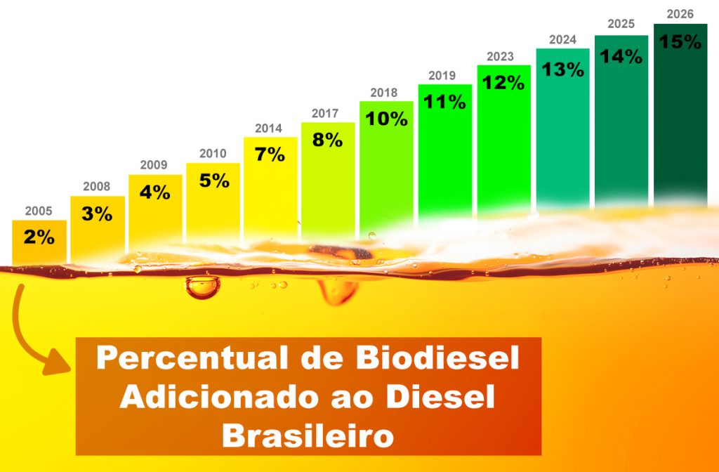 La mezcla de biodiésel en el diésel en Brasil está actualmente en 14%, según lo establecido por el Consejo Nacional de Política Energética (CNPE). La ley del «Combustible del Futuro» permite una variación en la proporción de biodiésel entre 13% y 25%.