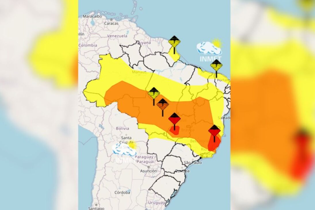 El aviso de Gran Peligro fue emitido por el Instituto Nacional de Meteorología y permanece válido hasta el miércoles (21), abarcando Minas Gerais, Río de Janeiro, Espíritu Santo y Goiás, regiones que ya presentan histórico reciente de trastornos causados por eventos extremos asociados al exceso de lluvias.