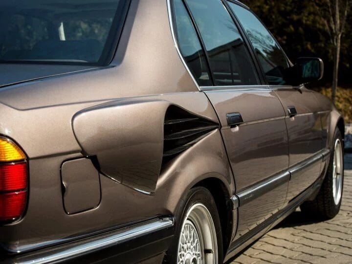 Tan impresionante como el motor de dieciséis cilindros, el trabajo que tuvo que realizarse sobre el E32 para acomodarlo bajo el capó y que fuera funcional. Ya les contábamos cómo BMW no tuvo otra opción que trasladar el radiador de la parte delantera, donde no había espacio para él por sus 30 centímetros de longitud extra sobre el V12, al maletero, usando dos radiadores más pequeños que tomaban aire fresco por dos enormes branquias de fibra de vidrio que se proyectaban de las aletas traseras.