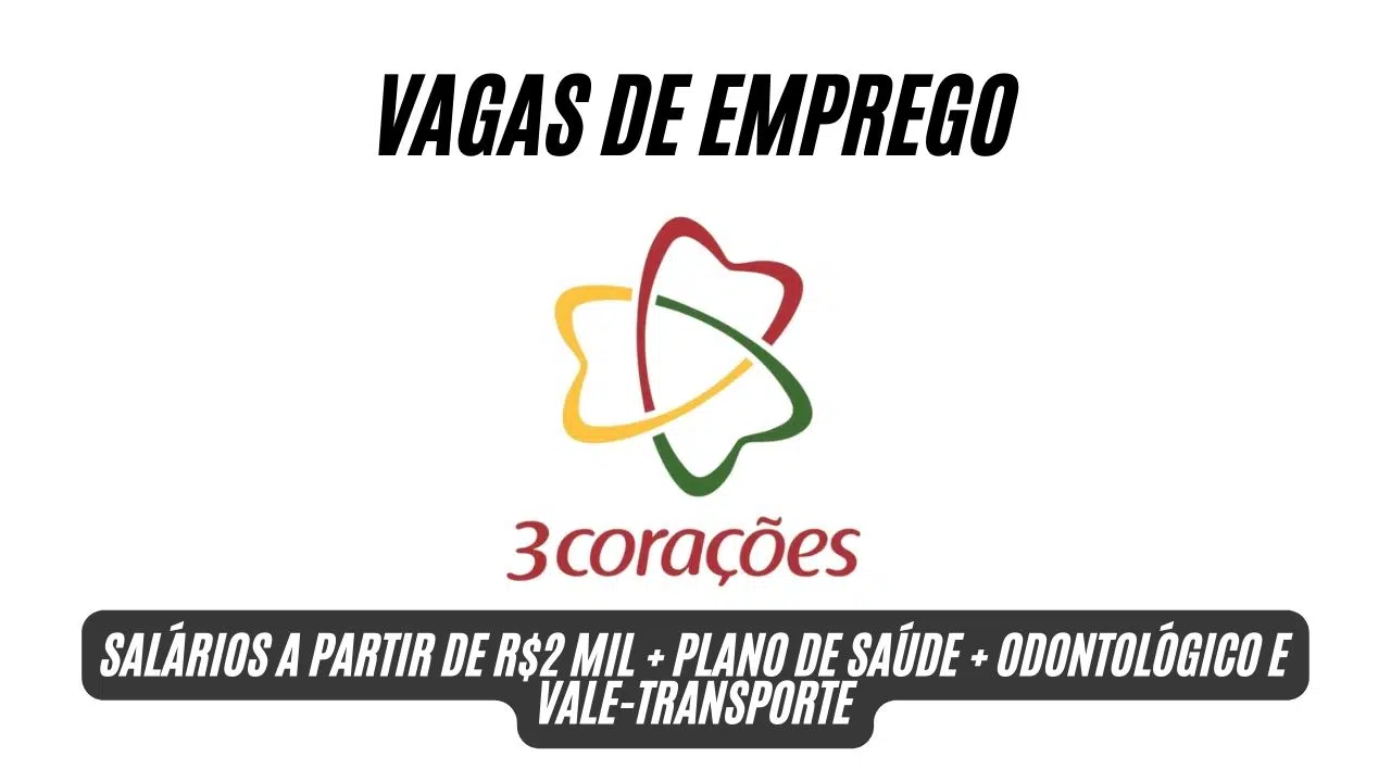 El Grupo 3corações abre proceso selectivo con vacantes en diversas áreas, ofreciendo salarios a partir de R$ 3 mil, plan de salud, odontológico y vale-transporte para nuevos talentos en todo Brasil.