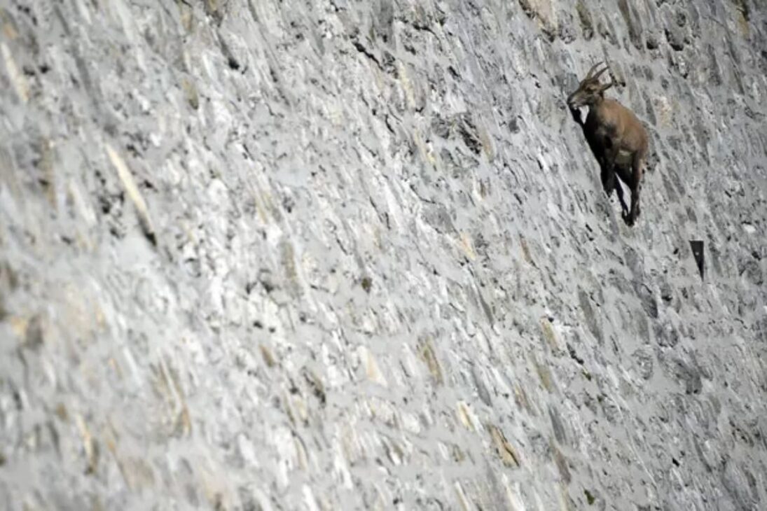 La superficie de la represa, que para humanos es solo cemento y piedra, para el íbex funciona como un “mapa” de nutrientes.