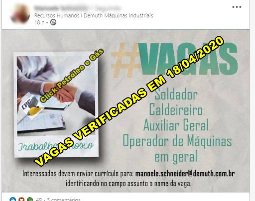 ¡REFORZANDO! Muchas personas han cuestionado el hecho de que nosotros de Click Petróleo y Gas estemos divulgando vacantes de empleo en medio de esta pandemia global por el coronavirus. Al final del artículo, disponibilizamos la captura de pantalla con el anuncio de la vacante.