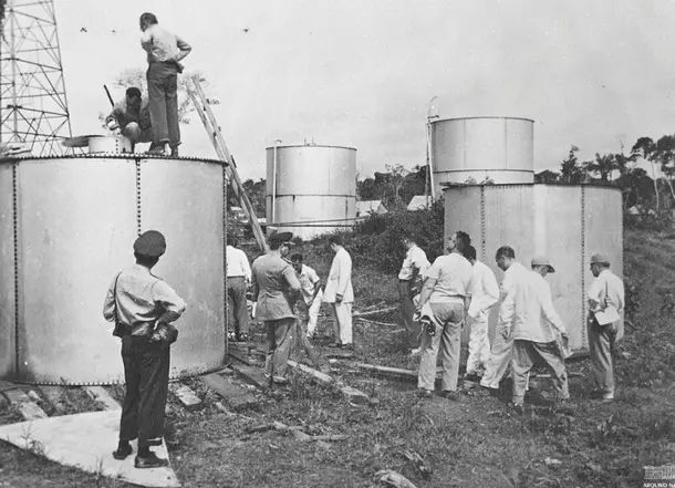 La estructura original del campo de Candeias estaba compuesta por tanques remachados de almacenamiento, una técnica anterior a la introducción de la soldadura a gran escala. Estos tanques fueron instalados alrededor de los primeros pozos productores y representan el inicio de la infraestructura industrial brasileña en el sector de petróleo y gas.