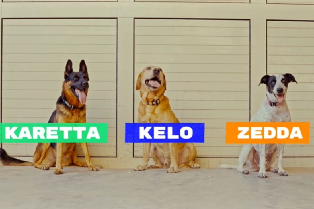 El trío que se convirtió en referencia en Boa Vista tiene nombres y perfiles bien definidos. Kelo es un labrador macho, entrenado en Suiza, con seis años, descrito como el líder del grupo.