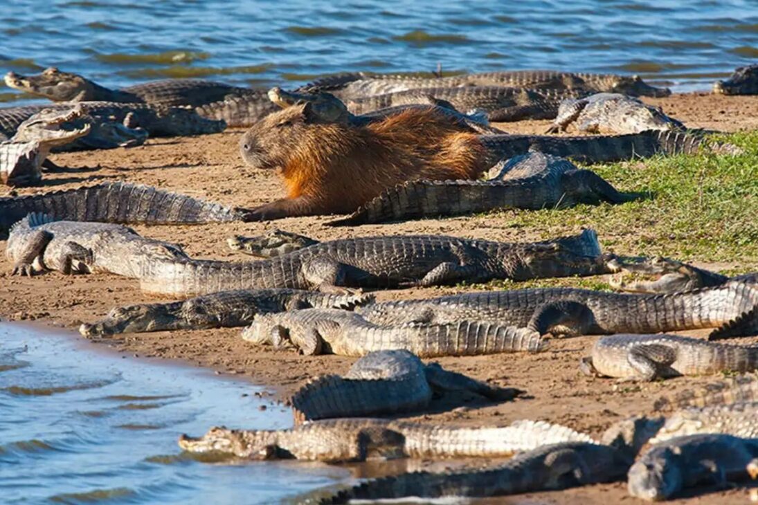 La imagen de un animal zen no significa ausencia de riesgo. La capibara comparte hábitat con caimanes y otros depredadores, y esta convivencia no es amistad, sino superposición de espacios.