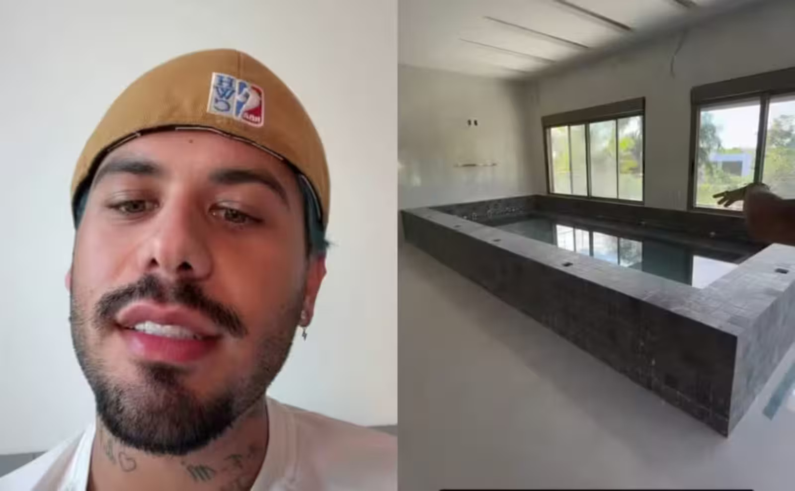 Con piscina en la habitación y gimnasio de vidrio, la mansión de Zé Felipe aún en construcción impresiona en un recorrido por espacios amplios y llenos de lujo en Goiânia.