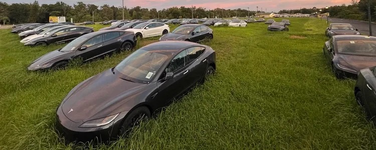 Coches de Tesla Abandonados en EE.UU.: Internautas Difunden Imágenes de un Verdadero ‘Cementerio’ de Vehículos Eléctricos, Mostrando Modelos Recientes de Tesla Abandonados en Florida.