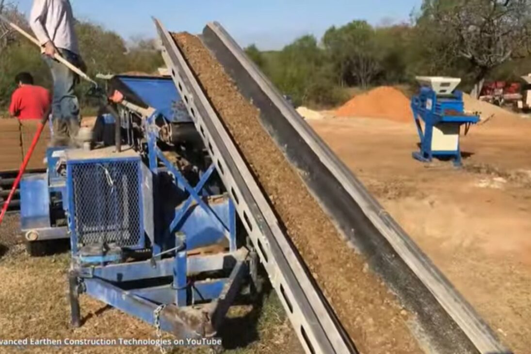 Uno de los equipos citados es el mezclador de tierra MX-20, descrito como capaz de procesar 20 yardas de material por hora. En un sistema de mayor tamaño, con ese mezclador y dos máquinas grandes de bloques, la capacidad de producción puede llegar a casi mil bloques por hora. Esto cambia la percepción de que construir con tierra es necesariamente lento, artesanal y limitado a pequeñas experiencias aisladas.