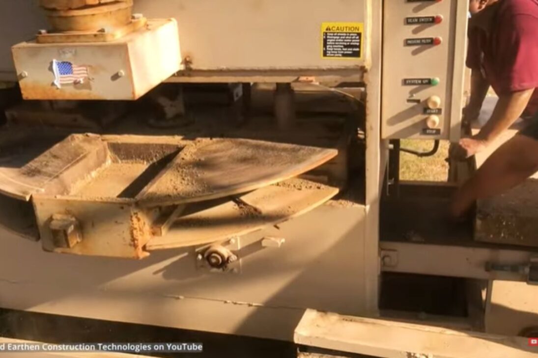 La eficiencia de esta casa depende directamente de las máquinas de bloques de tierra comprimida. Ryan Runge, presentado como presidente de la empresa Advanced Earthen Construction Technologies, afirma que la compañía opera desde hace 31 años y ya ha vendido equipos a 51 países.