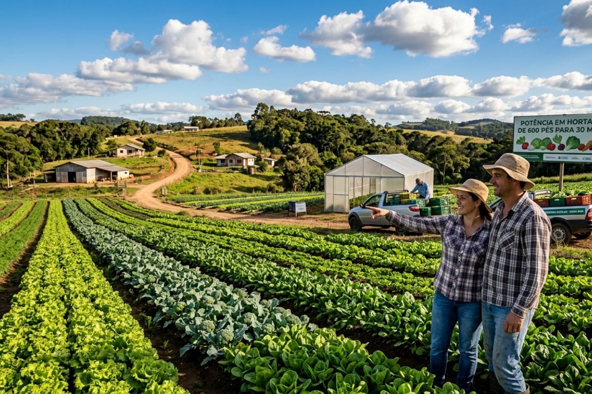 La pareja Luís y Luana comenzó a plantar en 2020, en un terreno cercano al centro de Dona Ema, y fue aumentando la producción a medida que la demanda creció. Lo que era un cultivo pequeño se convirtió en una rutina de cultivo bien dividida, con asistencia técnica y enfoque en hortalizas que tienen salida todo el año.