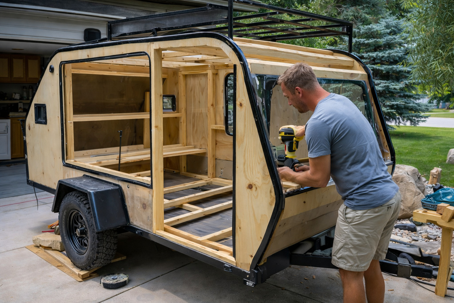 La propuesta del proyecto va más allá de una simple residencia. La pareja decidió integrar el garaje industrial al negocio de Brandon, que trabaja con autocaravanas.