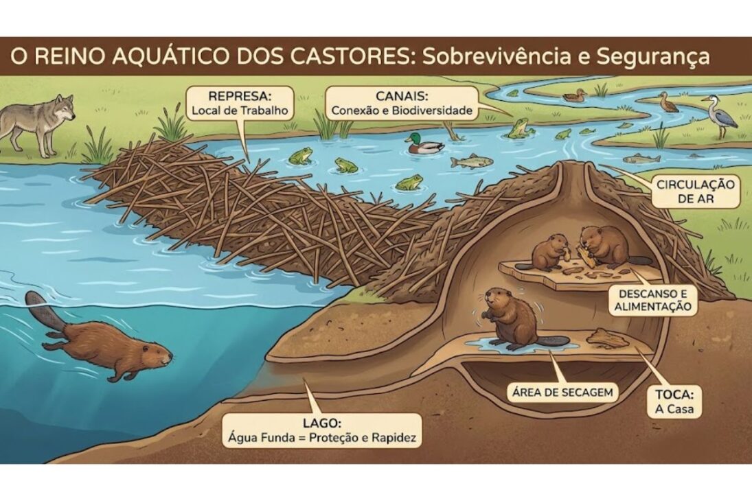 El “reino acuático” de los castores: lago, refugio y seguridad para la familia