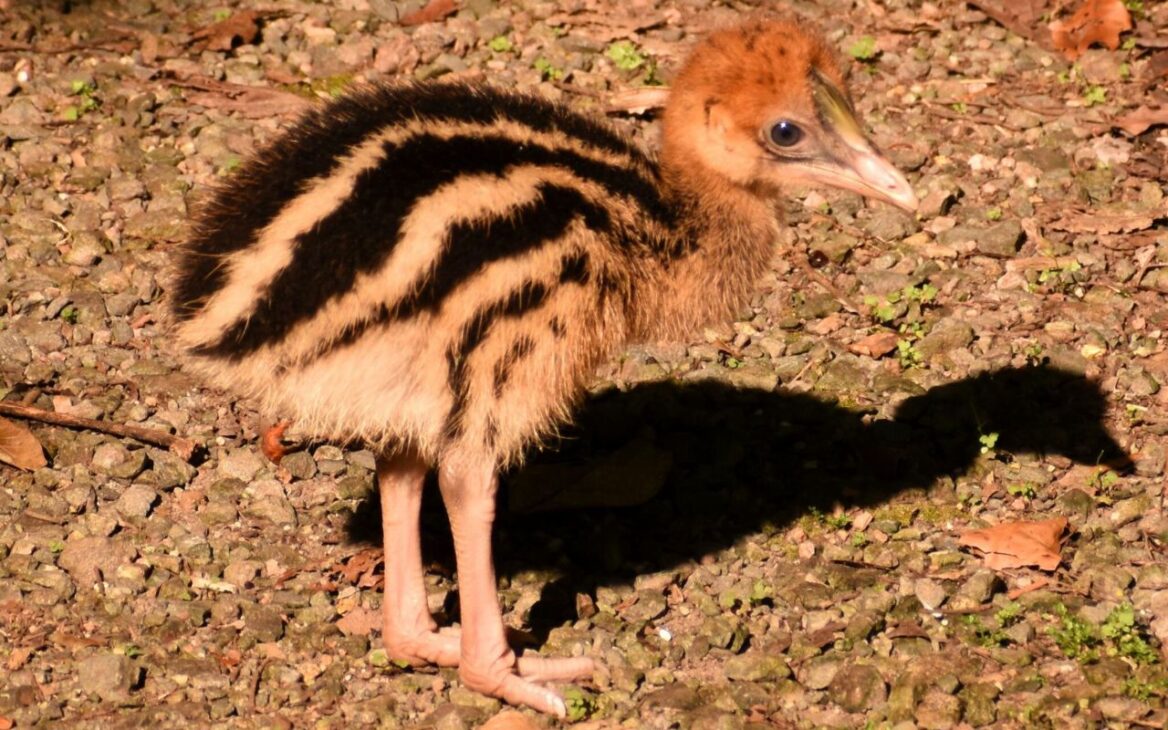 El ciclo de vida del casuario también es inusual. Al nacer, los polluelos presentan plumaje marrón con rayas.